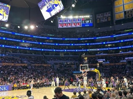 在11月11日进行的NBA常规赛中,湖人队主场123-103战胜猛龙,国安球员李可则在今天晒出了他当时现场观赛的照片。