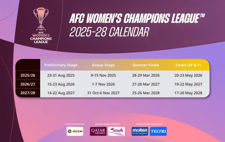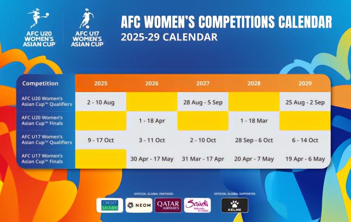 除此之外,女足委员会还敲定了2025年至2029年这五年期间赛事的具体赛程: