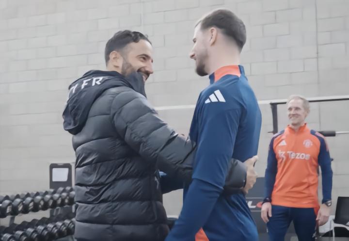在曼联官方媒体频道分享的视频中,可以看到阿莫林与梅森-芒特、卢克-肖等球员拥抱。