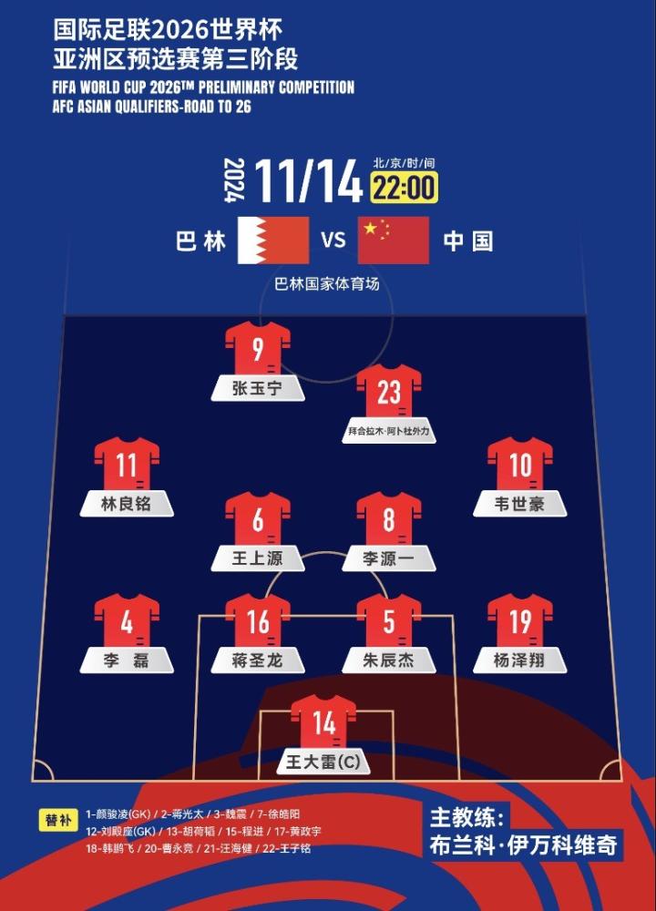 11月14日,中国男足对阵巴林男足的首发阵容出炉,多位媒体人对此发表了看法。