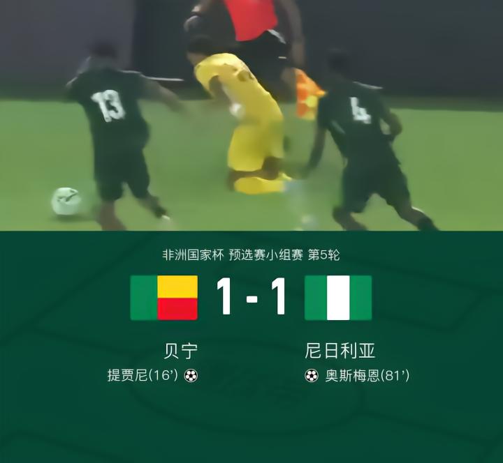 贝宁1-1尼日利亚,奥斯梅恩头球破门,提贾尼建功