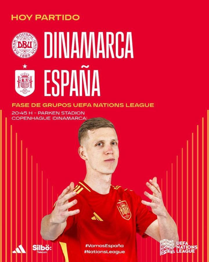 欧国联A级联赛第5轮,西班牙队将客场对阵丹麦队,赛前,西班牙队官方发布比赛海报。