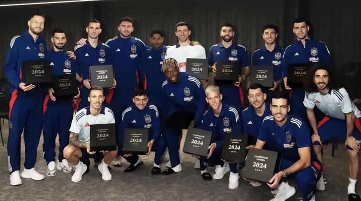 这位西班牙中卫在出征哥本哈根前一天早上,给球员和教练组带来了这份礼物,作为对队友们的感激和致敬。吊坠的纪念盒上装饰着他们在欧洲杯期间的照片。