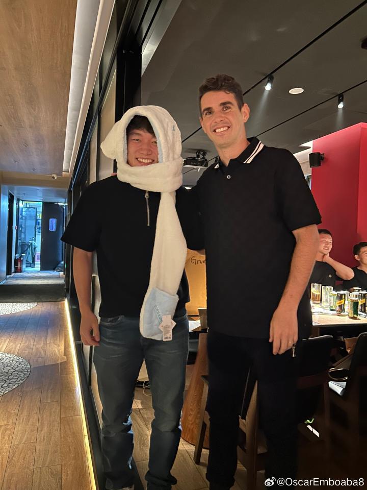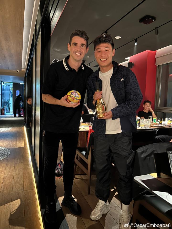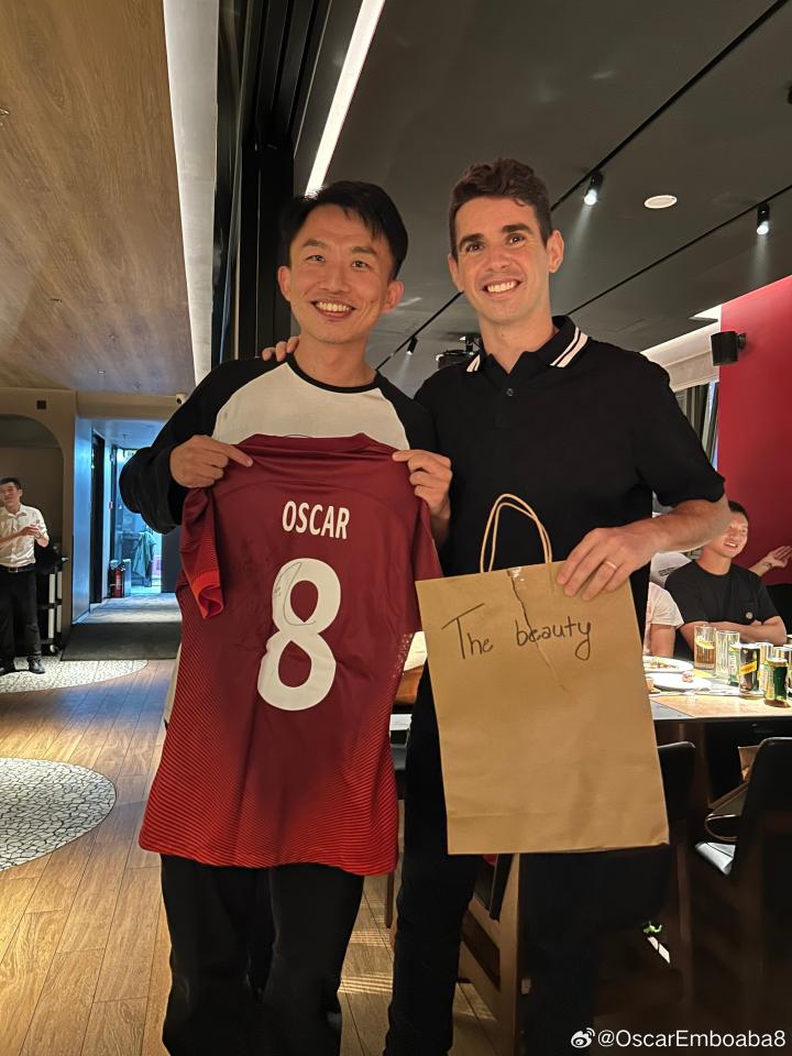 11月15日,上海海港队长奥斯卡在微博晒出全队聚餐的照片。