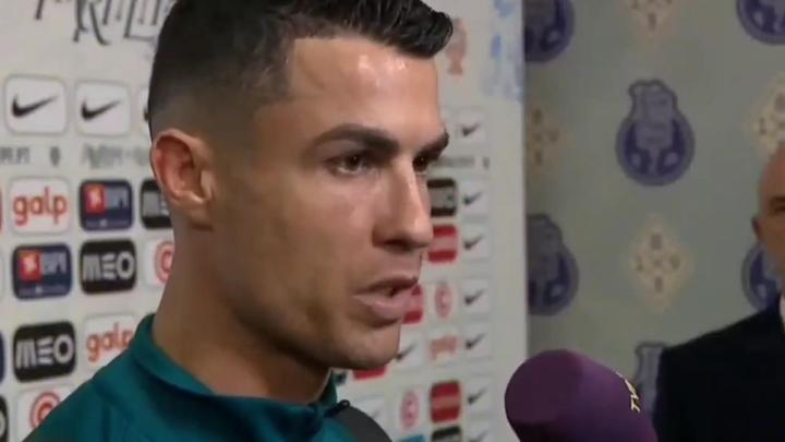 在欧国联小组赛第5轮上演梅开二度帮助葡萄牙主场5-1击败波兰之后,C罗在混合采访区接受了采访。