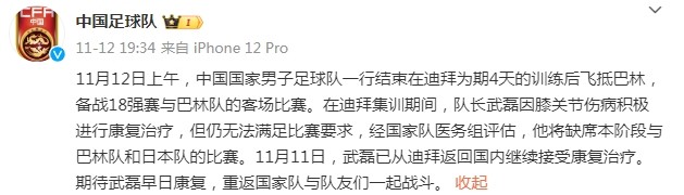 客场1-0绝杀巴林队,国足不仅再次看到了冲击世界杯的曙光,也让此前球队面临的争议一扫而空。但话题仍然存在,因伤告别本次集训的武磊因为赛后第一时间在社交媒体中为队友送上祝福,而被不少球迷调侃道:“赢球不可怕,缺谁谁尴尬。”