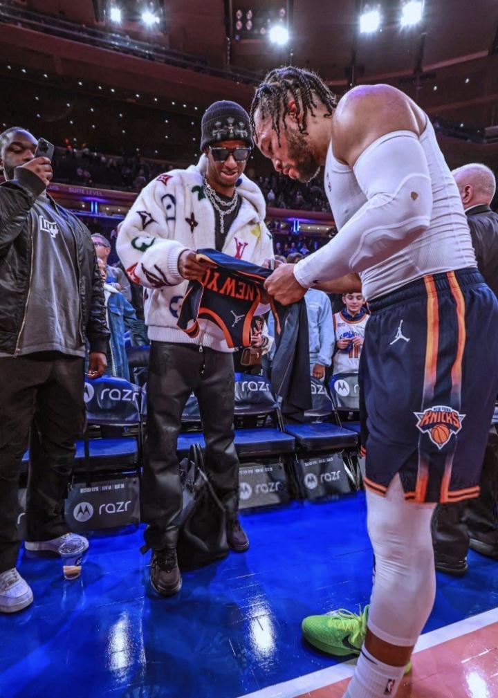 北京时间11月16日,NBA常规赛篮网vs尼克斯,经过一番对决,尼克斯最终以124-122战胜篮网,布伦森斩获37分。在本场比赛中,曼联球星拉什福德现场观赛,获赠布伦森签名球衣。