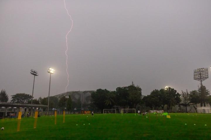 沙特队官方晒出了他们训练的照片,并配文:“我们队在雅加达的第一次训练现已开始”,可以看到,训练场附近有雷暴。