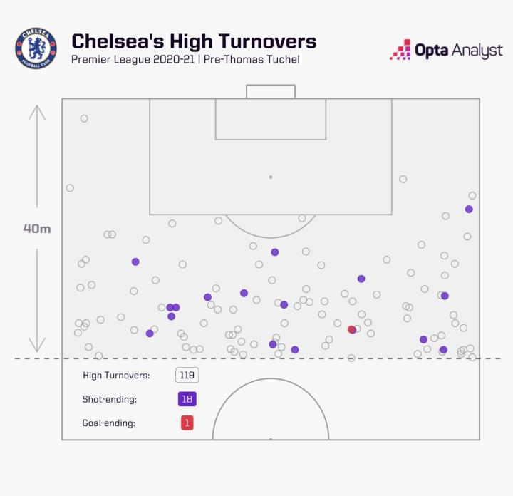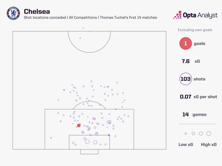 考虑到这一点,从图赫尔上任到赛季结束,切尔西在任何比赛中都没有以超过一球的差距输掉比赛,除非他们有球员被罚下。