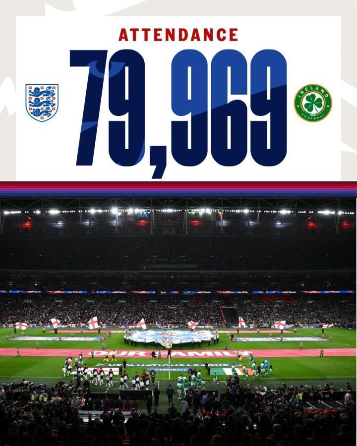 欧国联B级联赛第6轮,英格兰队主场5-0大胜爱尔兰队,本场比赛的现场观众为79969人。
