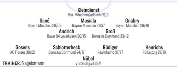 北京时间11月20日凌晨3:45分,欧国联A级联赛第六轮,德国将前往客场挑战匈牙利。赛前,《踢球者》预测了本场比赛德国队的首发阵容。