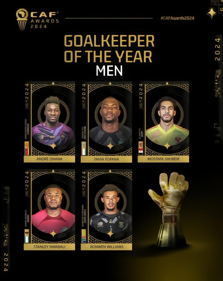 非洲足联公布了2024年非洲最佳门将的五位候选者,目前效力于曼联的喀麦隆国门奥纳纳领衔,此外名单中效力欧洲五大联赛的球员还有昂热的科特迪瓦国门叶海亚-福法纳。