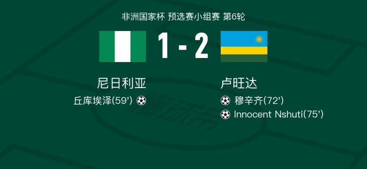 卢旺达2-1客场逆转尼日利亚,丘库埃泽破僵,恩舒蒂制胜