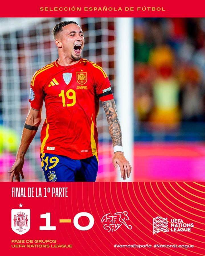 在欧国联A级小组赛的末轮比赛中,西班牙在上半时过后主场1-0领先于瑞士。此战第32分钟,佩德里主罚的点球被瑞士门将姆沃戈扑出,耶雷米-皮诺补射得手。