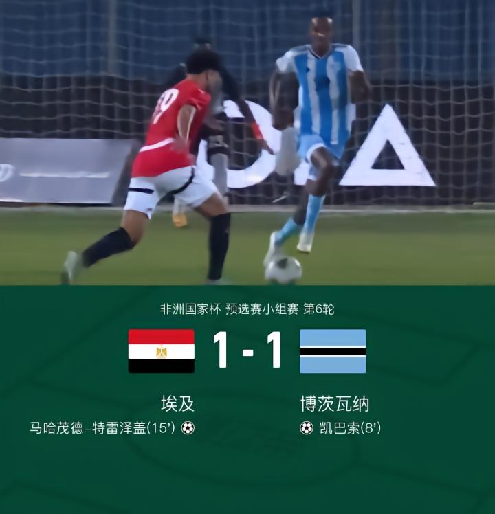 埃及1-1博茨瓦纳,凯巴索破门,特雷泽盖扳平