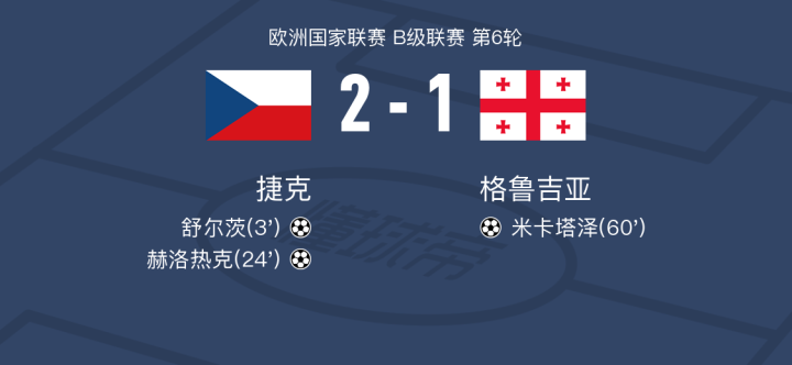 捷克2-1格鲁吉亚升级欧国联A级,舒尔茨破门,赫洛热克建功