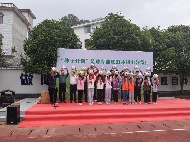 11月14日,“种子计划”足球青训联盟井冈山公益行捐赠活动仪式在黄坳小学举行,井冈山市政协副主席谢来波、井冈山市教体局局长马式铭、黄坳乡乡党委书记龙旺海、前国脚张永海以及“种子计划”足球青训联盟发起人、金城出版社的代表等出席了本次活动。
