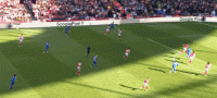 詹姆斯-贾斯廷对阿森纳的第二球(在禁区右侧凌空抽射,皮球划出一道美妙的弧线,击中左侧门柱入网)