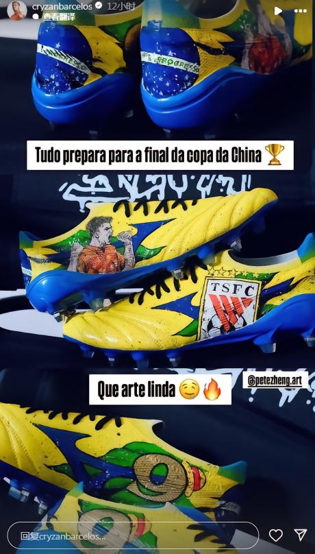 足协杯决赛克雷桑要穿这双球鞋出战!山东泰山外援克雷桑在社交媒体里晒出了定制战靴:“一切都在为中国足协杯决赛做准备🏆这个作品太赞了🤤🔥”