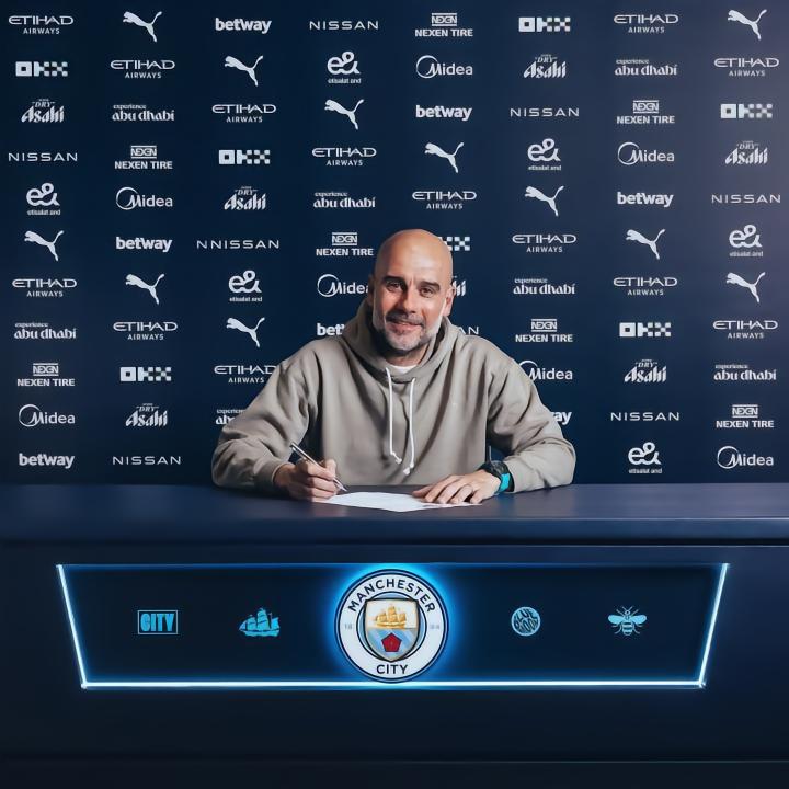 曼城足球俱乐部发布微博晒图,并评价瓜迪奥拉续约。