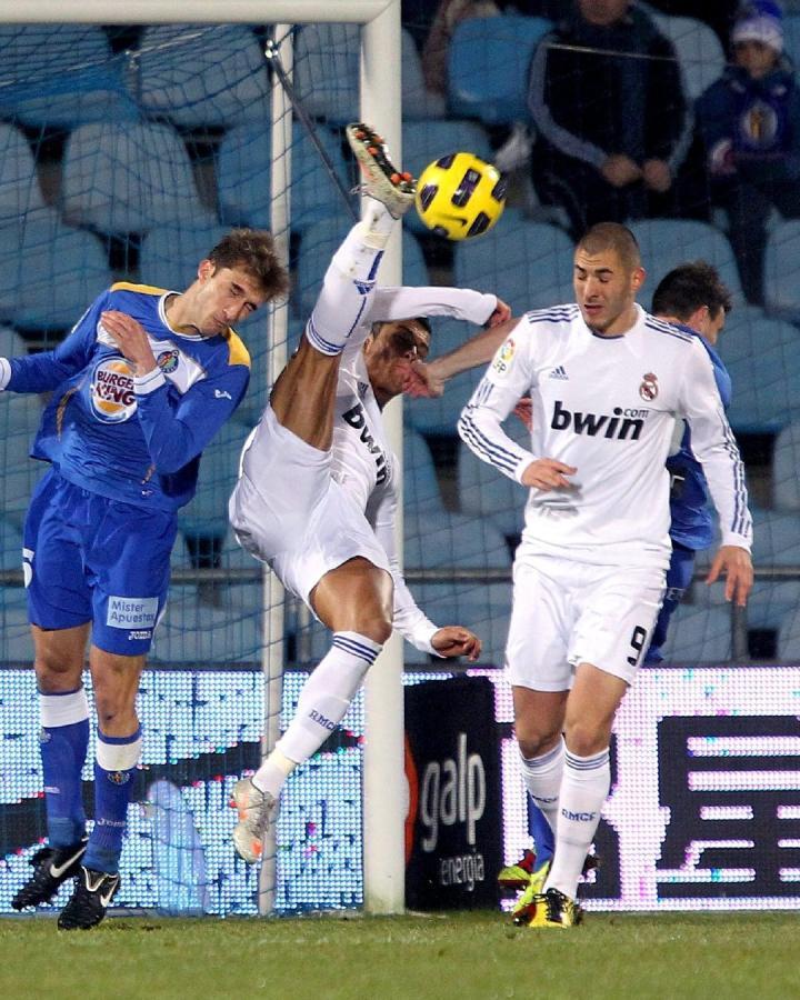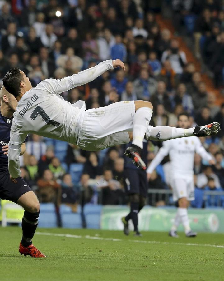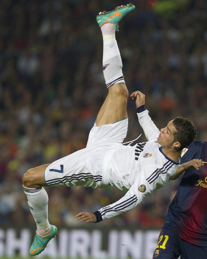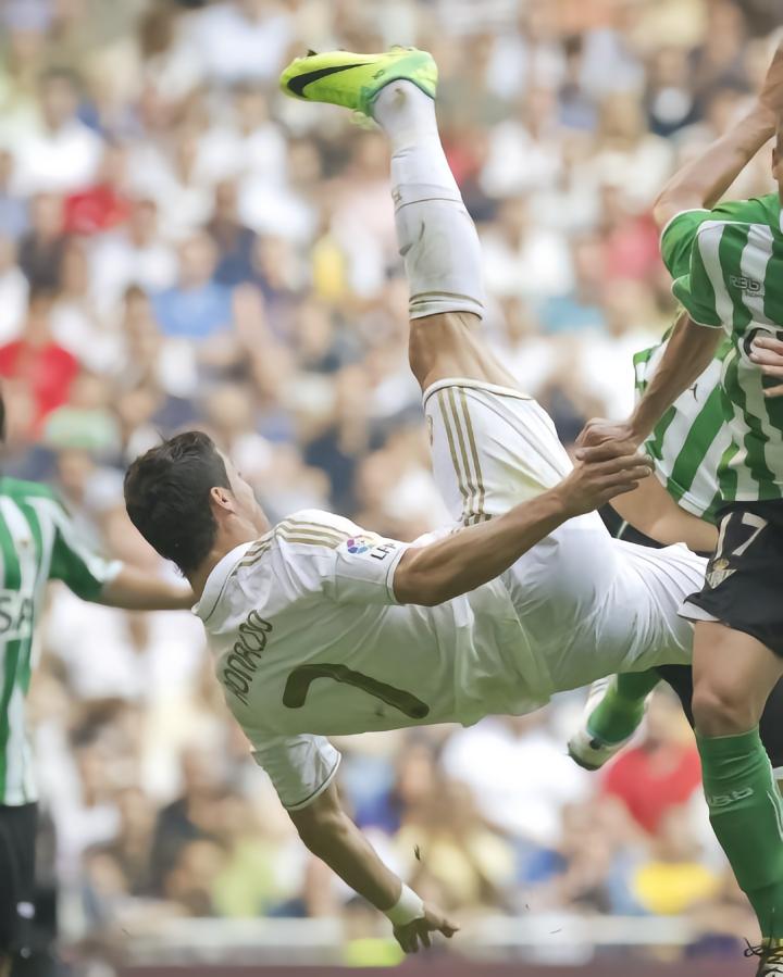 西班牙足球甲级联赛官方发布微博,晒出C罗效力皇马时在西甲上演的多次腾空倒勾的画面并配文:“一生飞翔的葡萄牙人🔥”