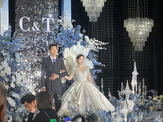 此前,青岛海牛足球俱乐部官方微博写道:“今天,球员陈佳奇结束了多年的爱情长跑,与一生挚爱滕镜淑携手步入婚姻殿堂,海牛俱乐部董事长乔伟光为这对新人证婚并送上祝福。祝愿他们花开并蒂、百年好合!”