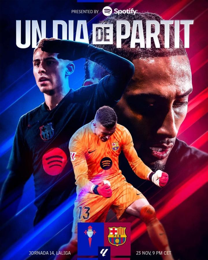 北京时间11月24日凌晨4点,西甲联赛第14轮,巴萨客场对阵塞尔塔。赛前,巴萨官方发布了本场比赛的赛前海报。