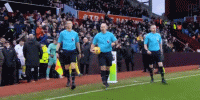 双方球员在裁判组带领下步入球场,比赛马上开始