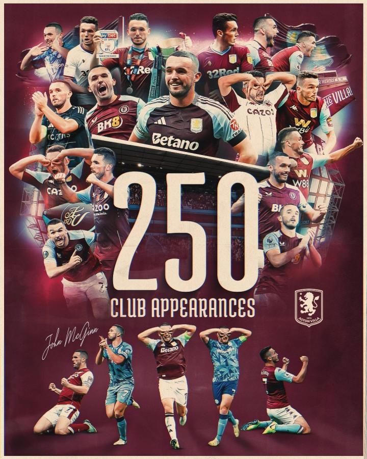 数据统计显示,这场比赛是麦金为维拉出场的第250场比赛。