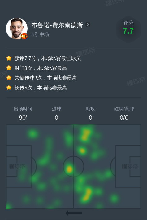 北京时间11月25日伊普斯维奇vs曼联,布鲁诺-费尔南德斯3次关键传球,3次射门,1次成功过人。