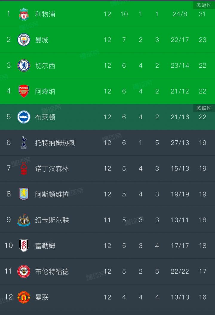 目前,曼联以16分排名联赛第12位,落后前四6分,比领头羊利物浦少了15分。
