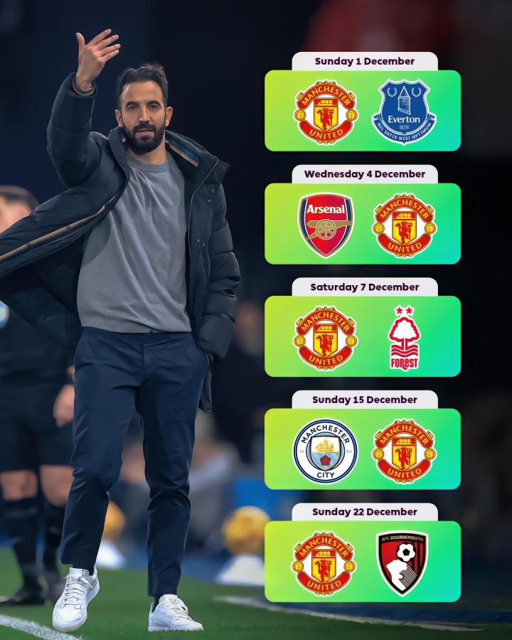 德比过后曼联将会面对圣诞节前的最后两场比赛,首先是客战托特纳姆热刺的英格兰联赛杯1/4决赛,然后则是英超联赛主场迎战现在只比他们少1分的伯恩茅斯。