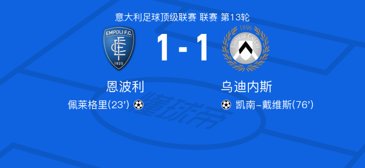 北京时间11月26日恩波利vs乌迪内斯,洛夫里奇得到全场最高的8.2分,布伦纳得到全场最低的5.7分