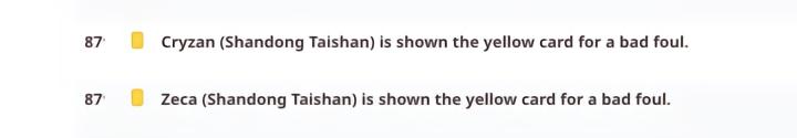 在与柔佛新山的亚冠比赛中,山东泰山前锋泽卡在比赛第87分钟因犯规领到一张黄牌。