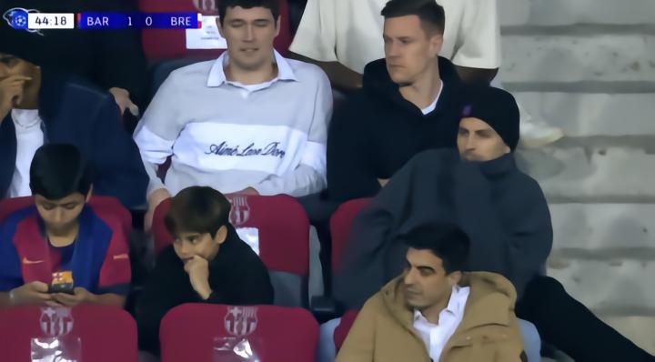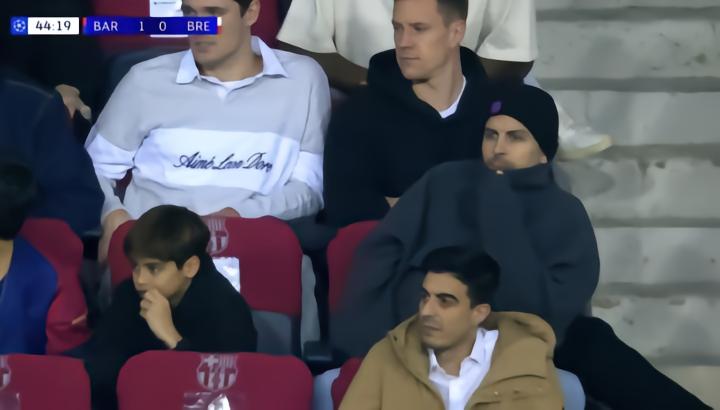 欧冠联赛阶段第5轮,巴萨主场对阵布雷斯特,巴萨传奇皮克在蒙特惠奇球场现场观战。