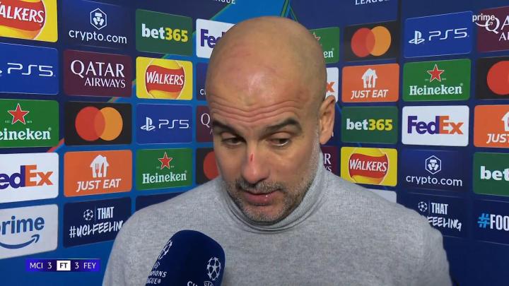 率队在欧冠联赛阶段第5轮主场3-3战平费耶诺德之后,曼城主教练瓜迪奥拉接受了来自Amazon Prime Video的采访。