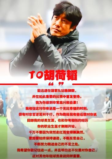 成都蓉城队主教练徐正源发布了一则动态,寄语在国家队完成两次出场的21岁小将胡荷韬。
