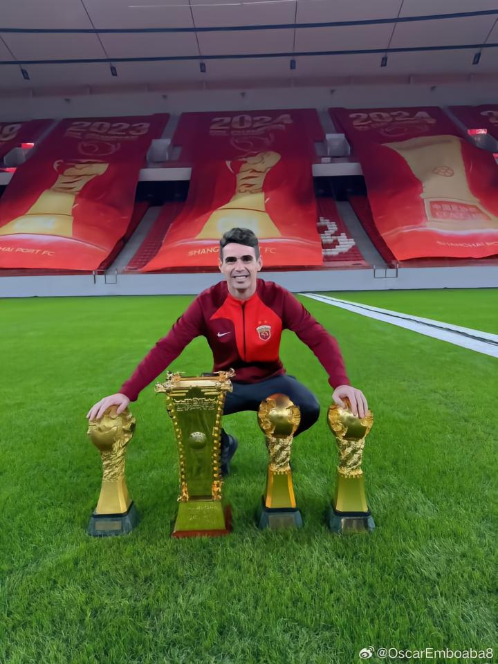 11月28日,奥斯卡在社交媒体晒出他和海港生涯四座冠军奖杯的合照。