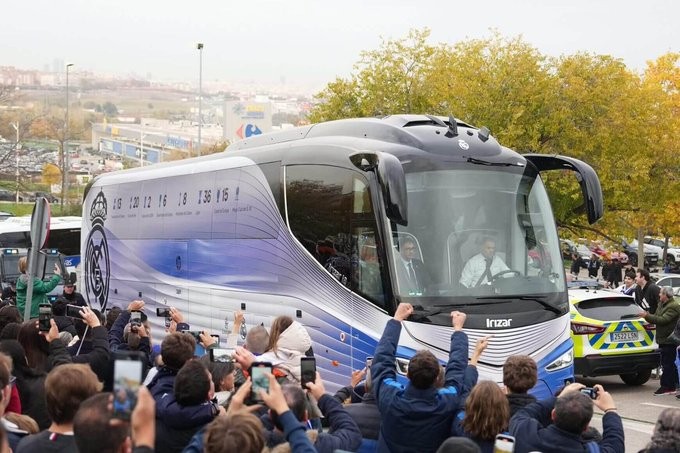 大巴上没有球员,车上载有工作人员和球员的装备,正在前往伦敦的途中。