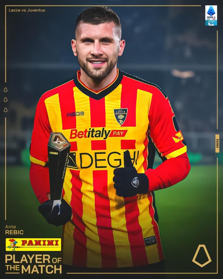 官方消息,雷比奇当选莱切对阵尤文图斯一役全场最佳。