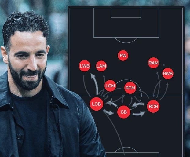 (图)处于逆足位置的达洛特适合在前场接球后直扑禁区,迪亚洛可以完成长距离带球推进,阿莫林的战术设计细节拉满。