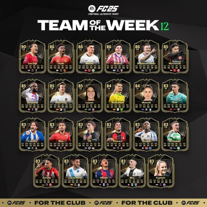 《FC25》刚刚上线了第12周的黑卡,范戴克领衔,阿马德-迪亚洛、小蜘蛛在列。