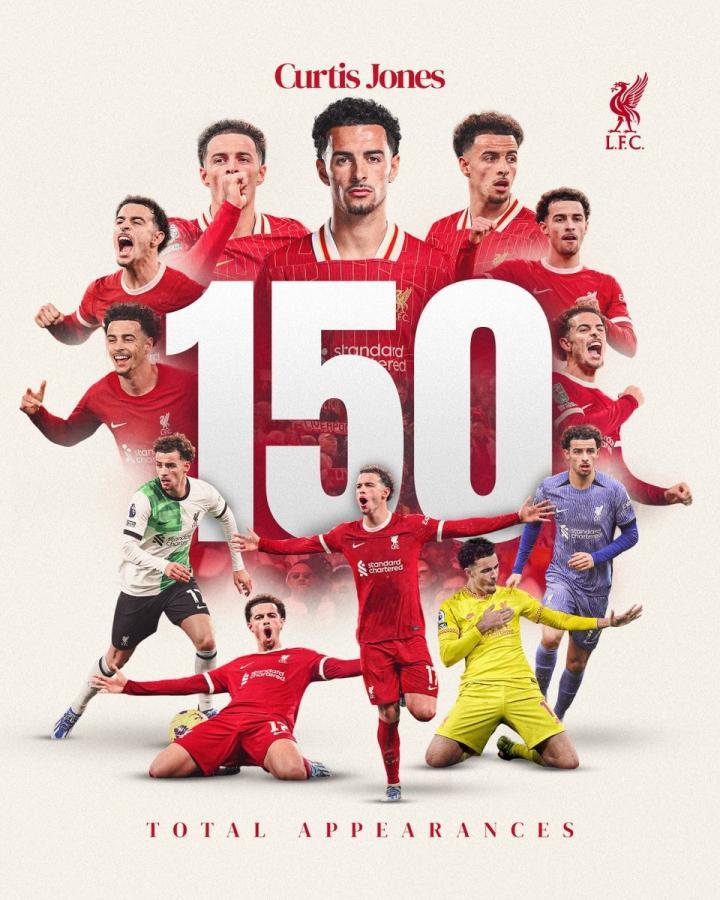 此前149次代表利物浦一线队出场,柯蒂斯-琼斯一共打入17球,送出16次助攻。