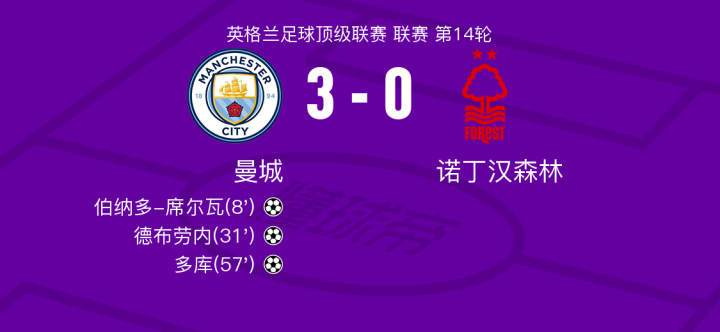 北京时间12月5日曼城vs诺丁汉森林,德布劳内得到全场最高的8.9分,萨维尼奥得到全场最低的5.8分