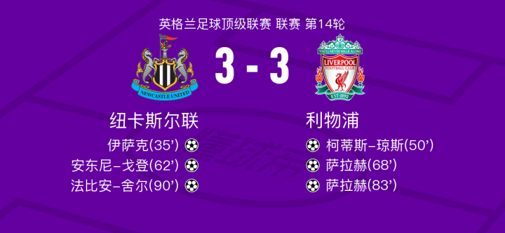 北京时间12月5日纽卡斯尔联vs利物浦,萨拉赫得到全场最高的9.1分,努涅斯得到全场最低的6.0分