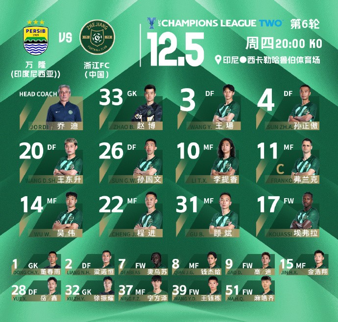 北京时间12月5日,浙江队在亚冠二级联赛小组赛最后一轮客场4-3战胜印尼球队万隆,但依然以小组第三身份遗憾出局。