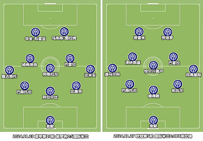(图)近期连续作战,国米在40天内打出5场1-0,这是战术层面的“轮换”。
