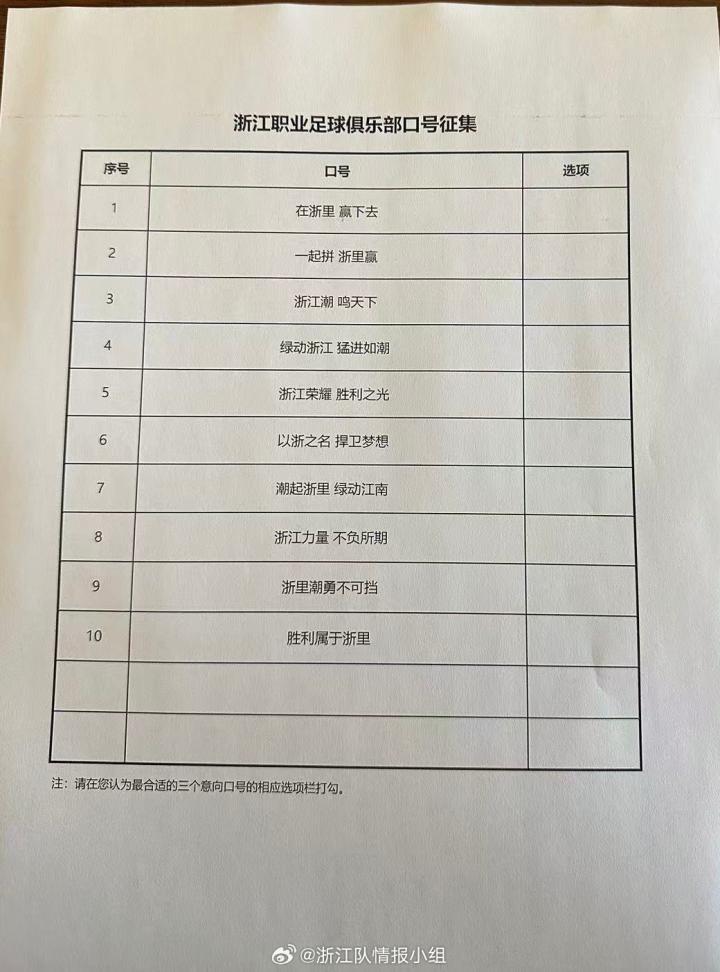据博主“浙江队情报小组”消息,今天下午,浙江职业足球俱乐部召集所有球迷协会负责人开了一次会,浙江队新任副总表示,俱乐部不会更名,主体颜色不改。
