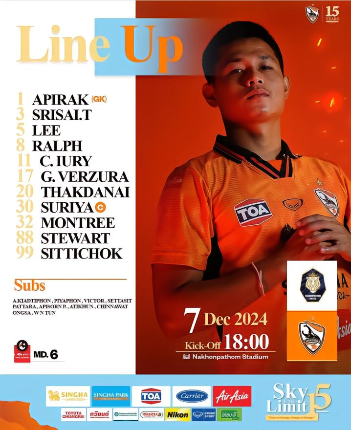 北京时间12月7日晚19:00,泰国超级联赛第6轮,清莱联客场对阵佛统联。
