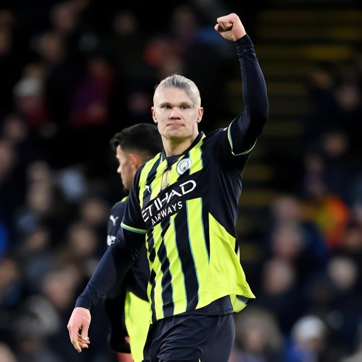 此役客场对阵水晶宫,哈兰德在比赛第30分钟头球破门为曼城将比分扳为1-1。